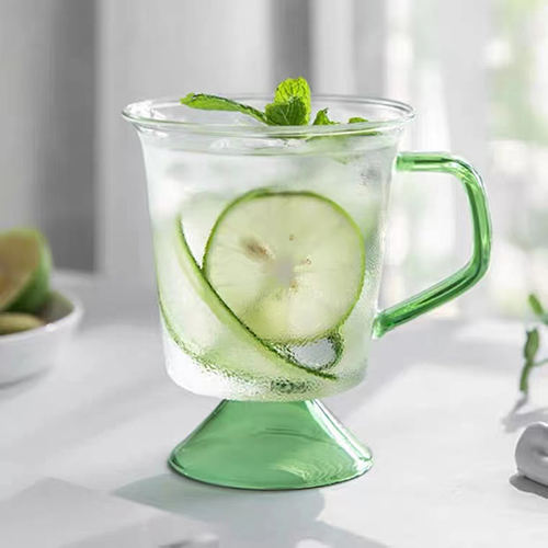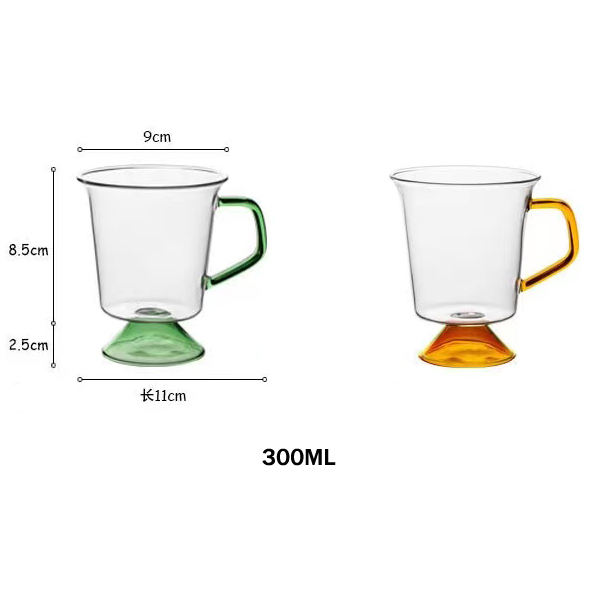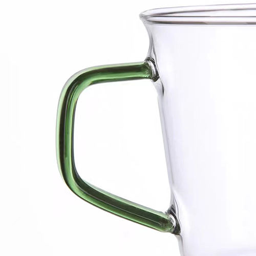 Mug à café en verre borosilicate irlandais personnalisé avec poignée verte-brune, capacité de 300 ml, sans BPA et résistant à la chaleur