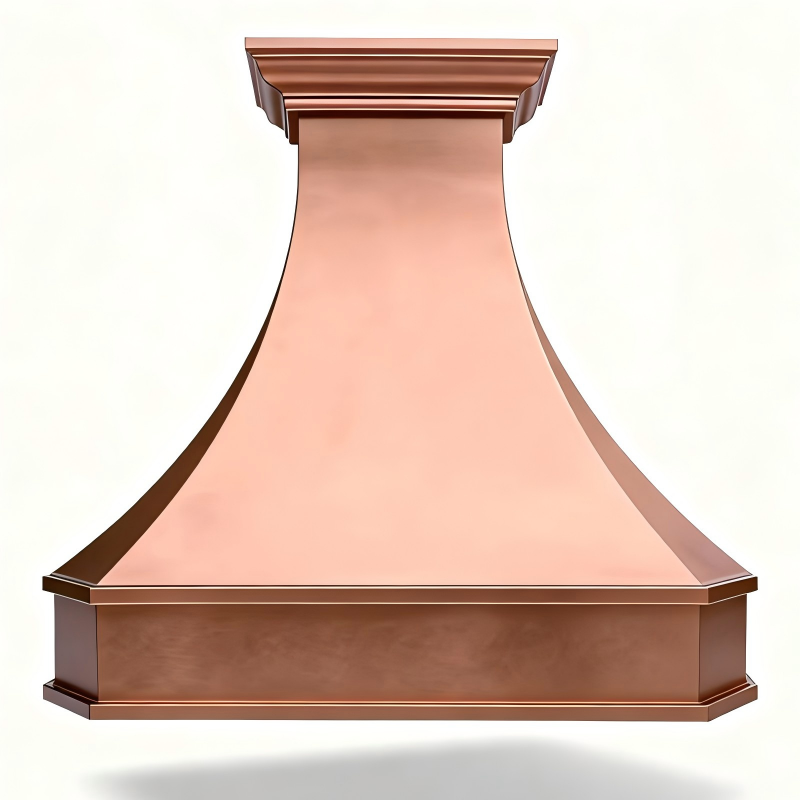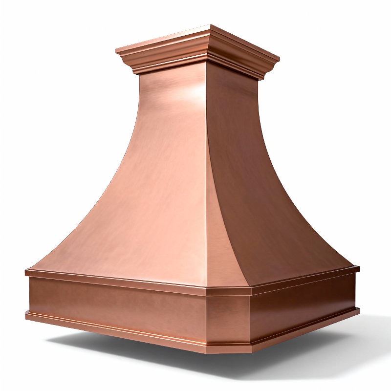 Hotte de cuisine sur mesure en cuivre, montage sur îlotType
