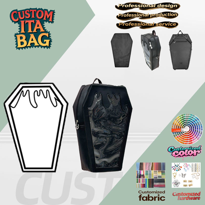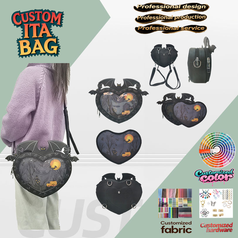Sac Ita personnalisé de style gothique, sac Ita transparent personnalisé avec chaîne et insert pour épingles