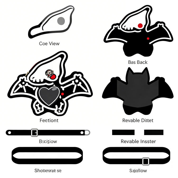 Série de sacs Ita personnalisés en gros, sac à bandoulière pour gamer girl, en forme d'oreilles de chat, de pieuvre bleue et de grenouille verte, avec fenêtre transparente