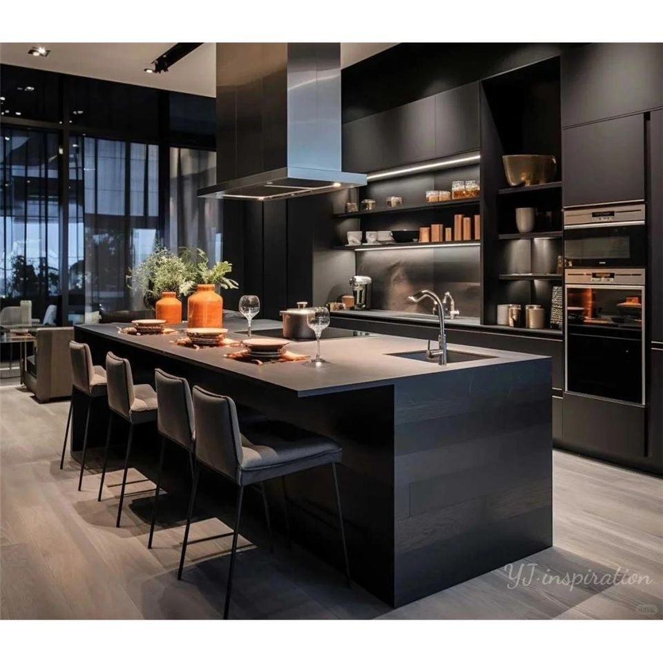 Armoires de cuisine intelligentes italiennes personnalisées, cadre en aluminium, porte en verre, système d'armoires de cuisine