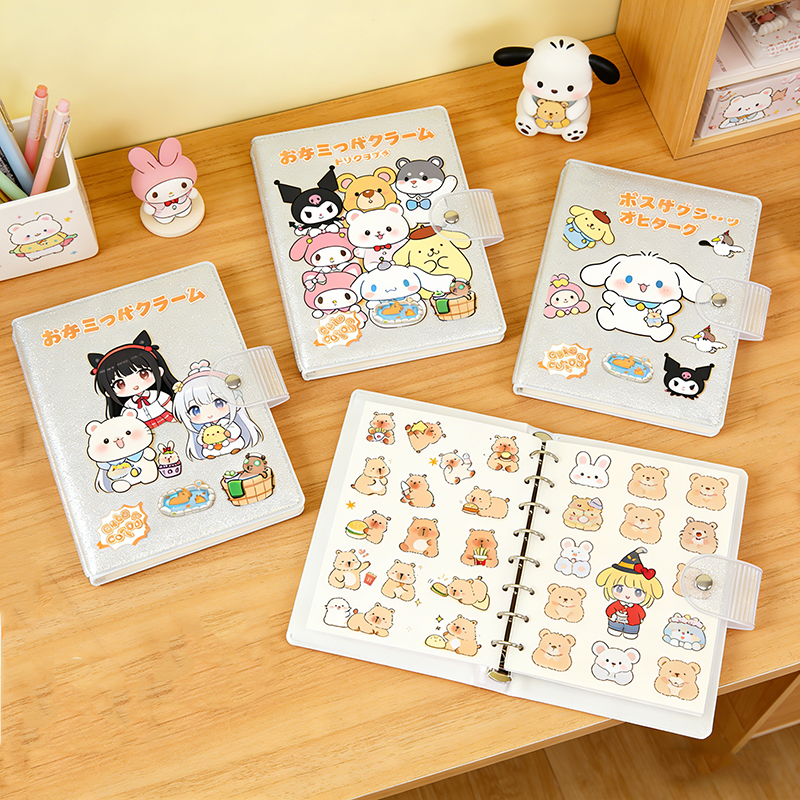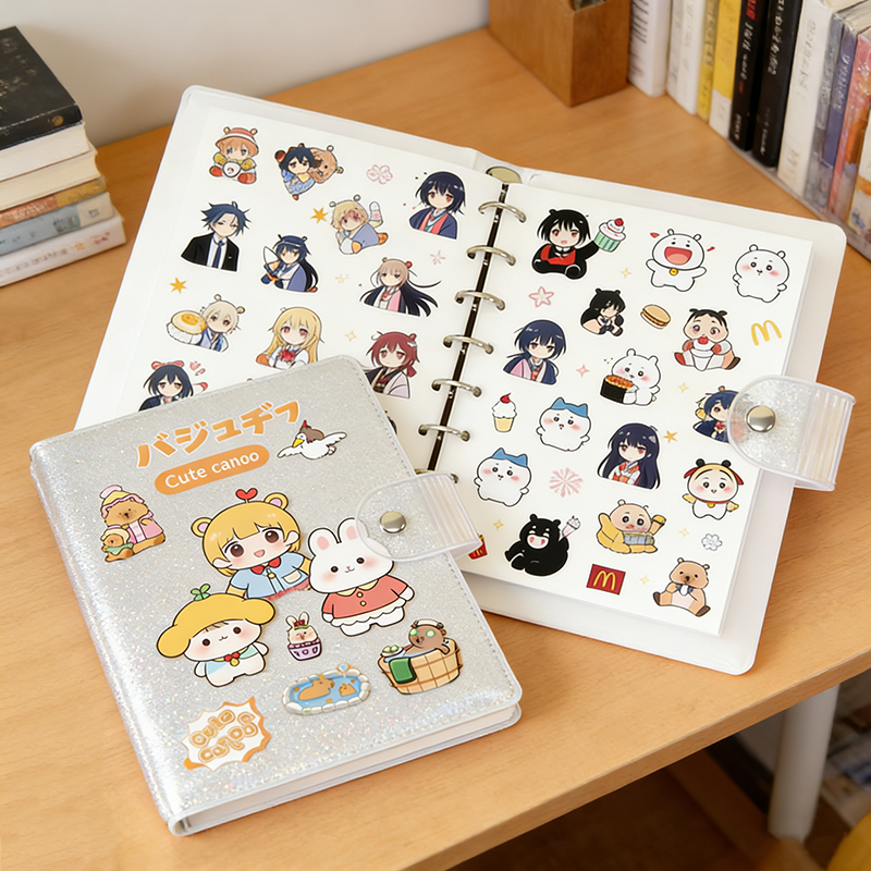 Carnet de notes portable en PVC réutilisable avec autocollants, thème dessin animé japonais, pour collection d'autocollants pour enfants
