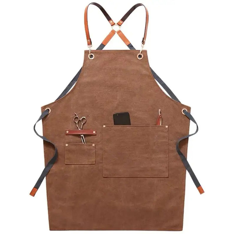 Tablier à bavette en coton croisé au dos de style japonais personnalisé accessoire de cuisine et de jardin sans manches durable avec deux poches