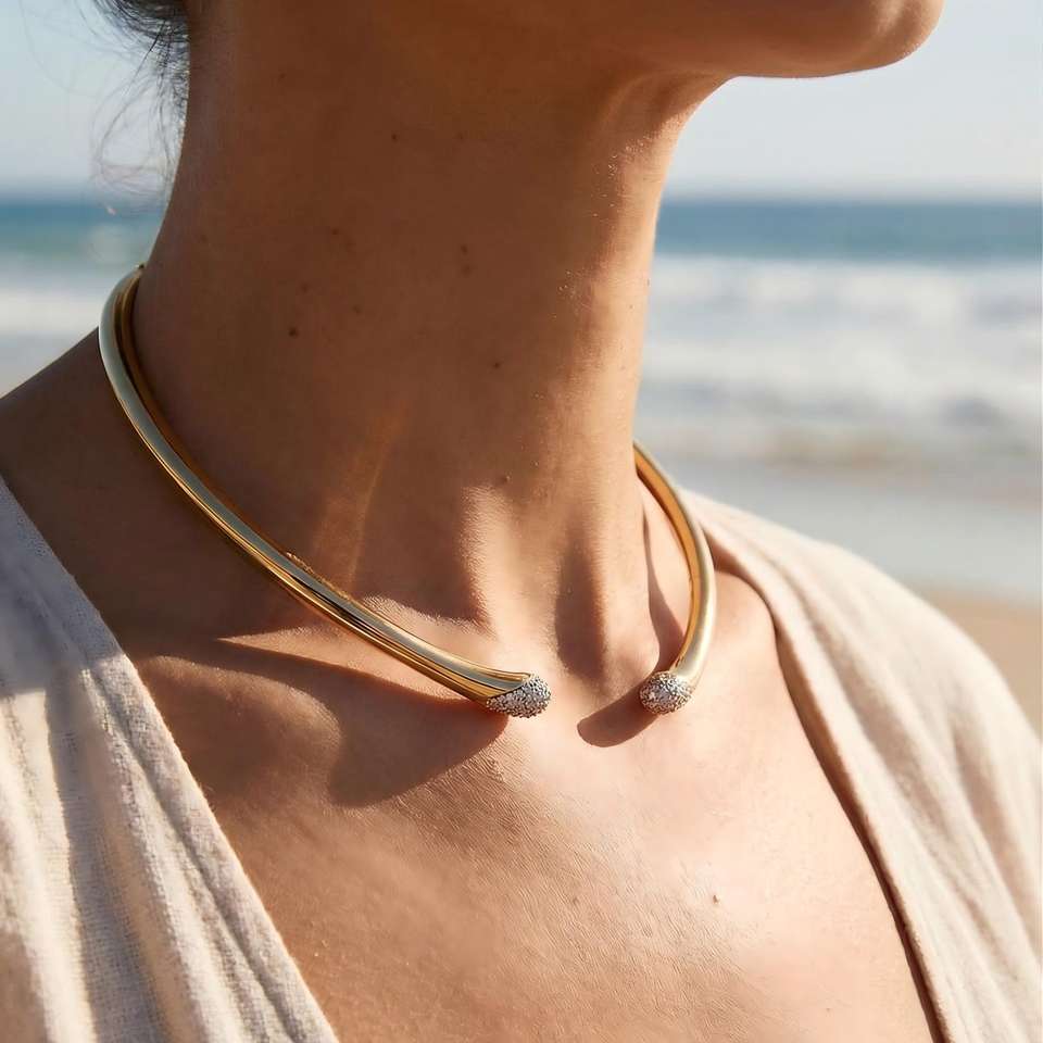 Collier ras du cou torsadé ouvert en laiton doré avec zircon, étanche, hypoallergénique, bijou de mode minimaliste, cadeau personnalisé