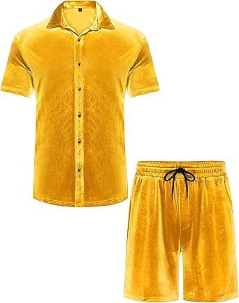 Ensemble de survêtement d'été personnalisé pour homme en velours respirant de haute qualité, short de jogging et short à boutons, coupe ajustée, jaune, deux pièces