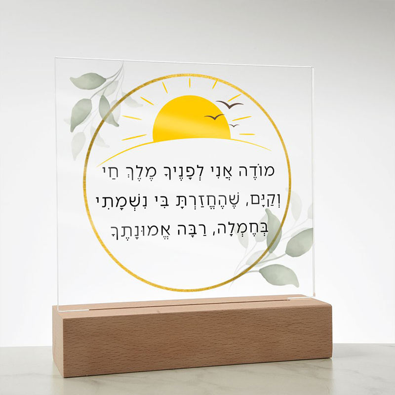 Lampe Judaica Shema personnalisée lumière Lucite carrée avec socle en bois couleur changeante veilleuse LED gravée prière Shema Yisrael
