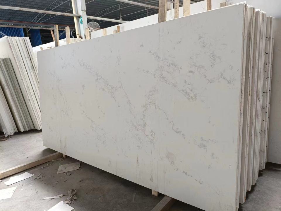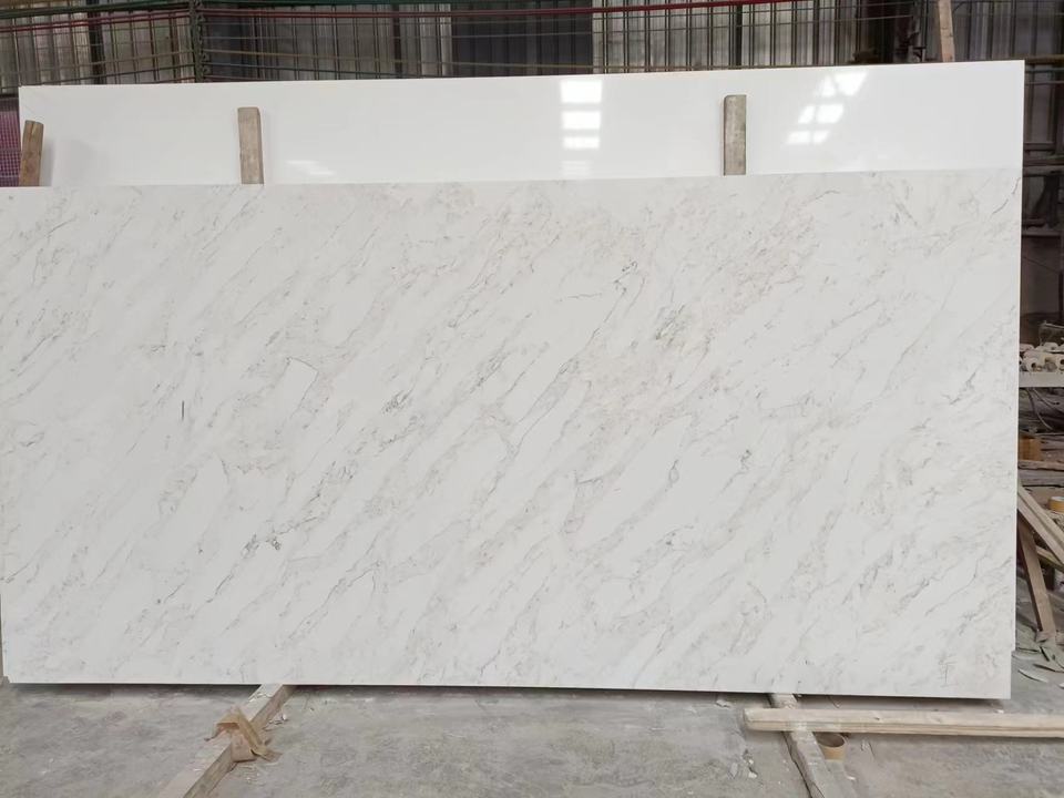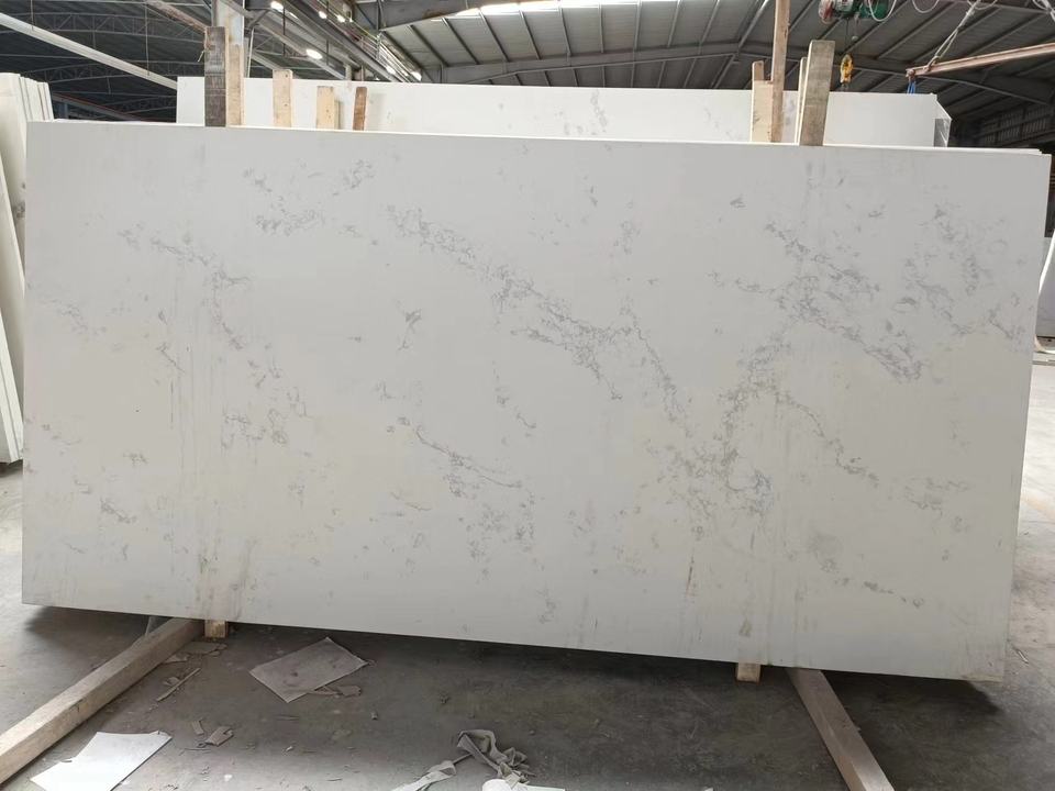 Plan de travail en quartz blanc Karacata personnalisé, grande dalle, pierre de quartz artificielle pour comptoir de cuisine et dessus de table