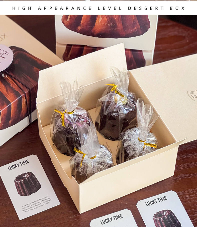 Boîte d'emballage personnalisée Keluli, 4 pièces de nougat croustillant en forme de flocon de neige, boîte en papier pour dessert madeleine, boîte à gâteau pour pique-nique commercial