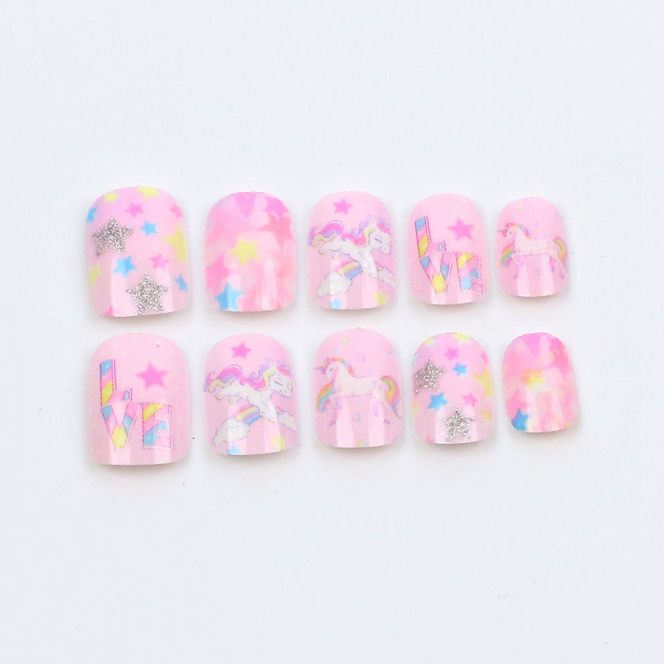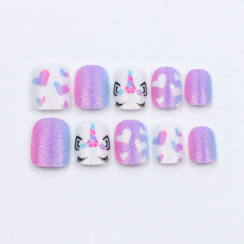 Faux ongles pour enfants personnalisés licorne colorée design long carré en ABS matériel à poser sur les ongles des enfants motifs papillon Stiletto amande