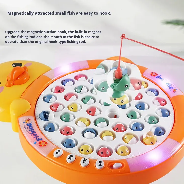 Jouet de table de pêche électronique rotatif en plastique multifonctionnel pour l'éducation précoce des enfants avec éclairage et musique