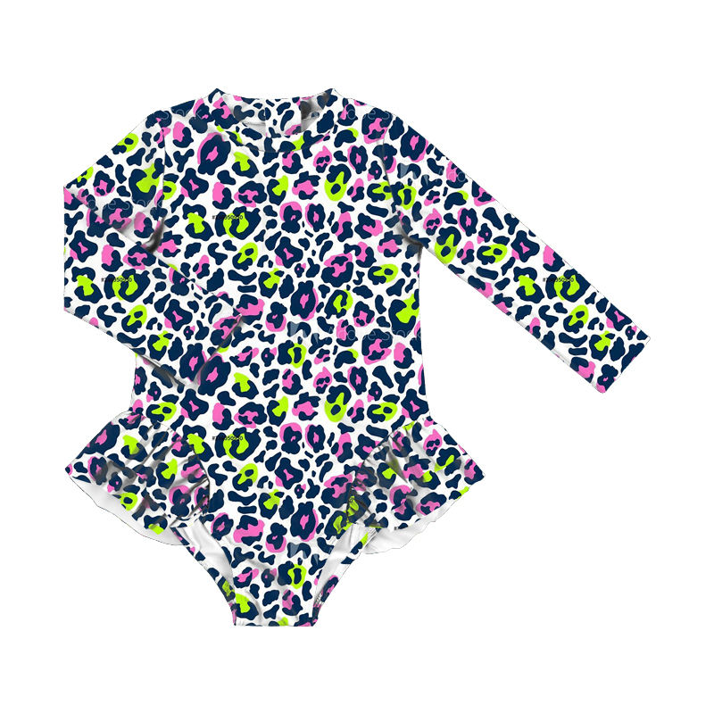 Maillots de bain personnalisés pour filles, à manches longues, avec volants, fermeture éclair, vêtements de bain pour enfants, vêtements de plage, boutique de vêtements de bain