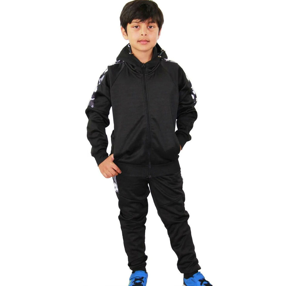 Ensemble de vêtements de sport personnalisés pour enfants Ensemble de survêtement en polyester à blocs de couleurs personnalisé Haut à capuche à col haut Joggers avec motif uni