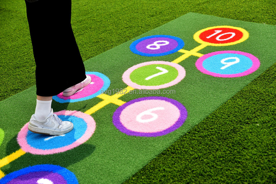 Écologique, Durable, Installation facile, Recyclable, Logiciel, Ignifuge, Revêtement de sol pour cour d'école, Gazon pour centre d'éveil, Gazon à motifs éducatifs