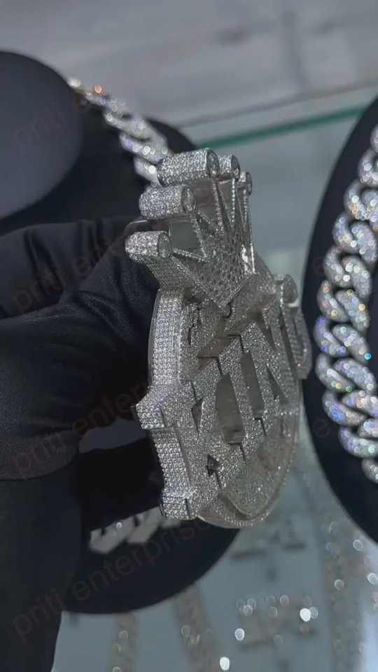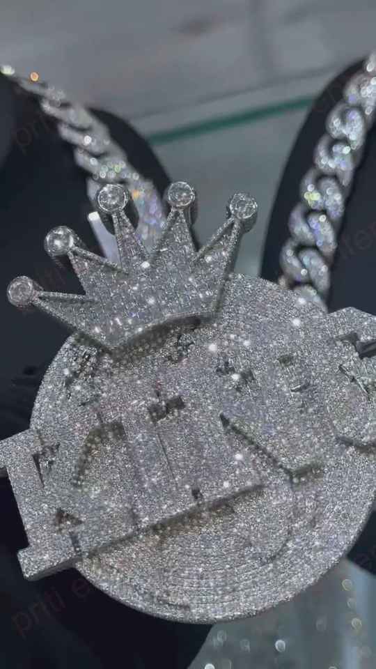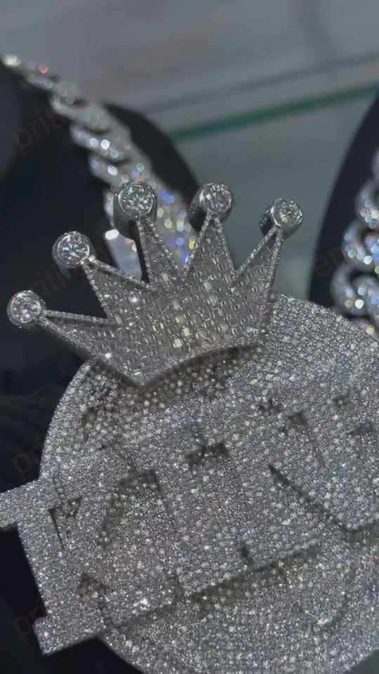 Pendentif personnalisé en forme de cercle avec initiale, style Hip Hop, en argent 925, entièrement serti de diamants Moissanite VVS, avec attache couronne, collier avec initiale