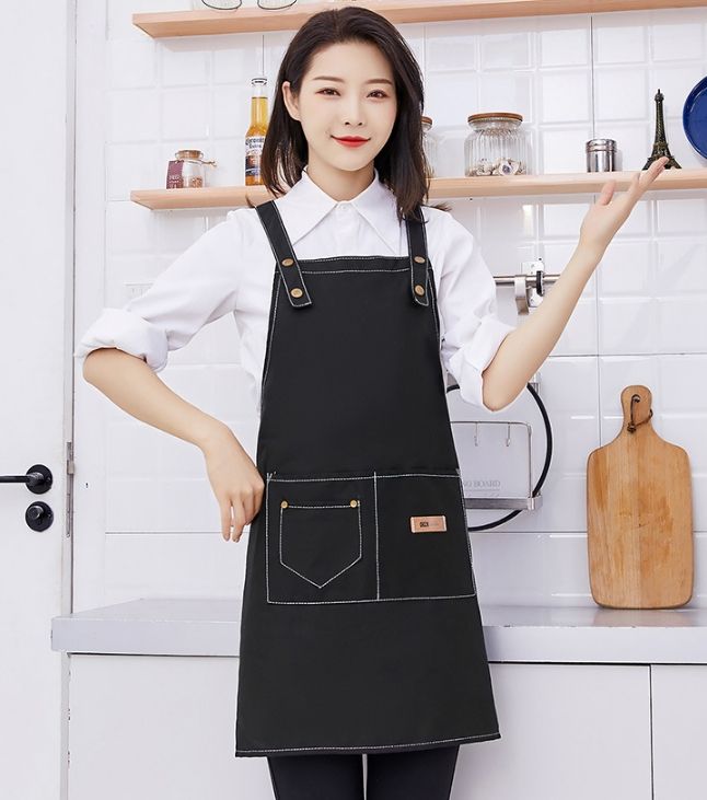 Tablier de cuisine personnalisé en toile, tablier rouge pour barista, tabliers de cuisine coréens en coton