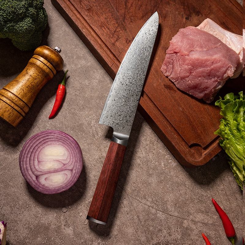 Couteau de cuisine personnalisé Damast VG10 Couteau de chef Couteaux damas vierges avec manche en bois