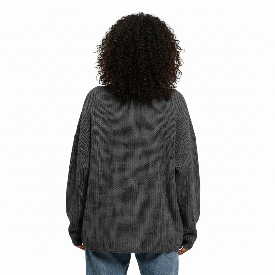 Pull à col rond surdimensionné décontracté en acrylique/polyester respirant tricoté sur mesure pour l'automne et l'hiver, manches longues, logo sur le devant, pour femmes