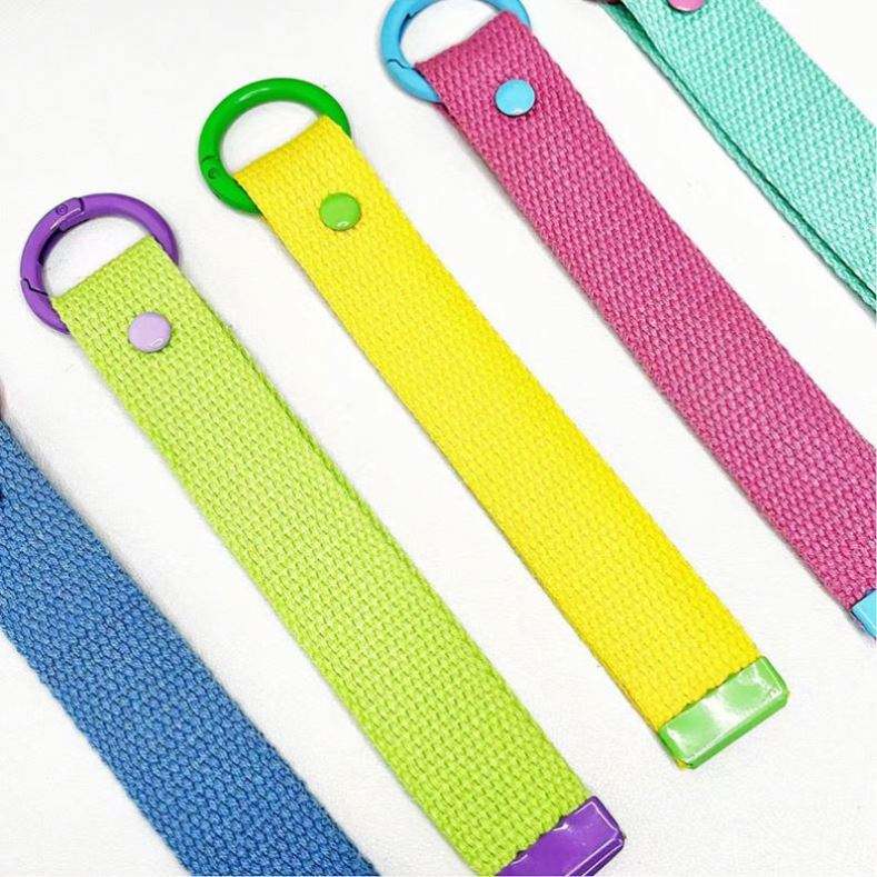 Porte-clés en nylon personnalisé style INS coréen pour sacs, avec mousqueton métallique pour bouteille, sangle anti-perte et petite attache.