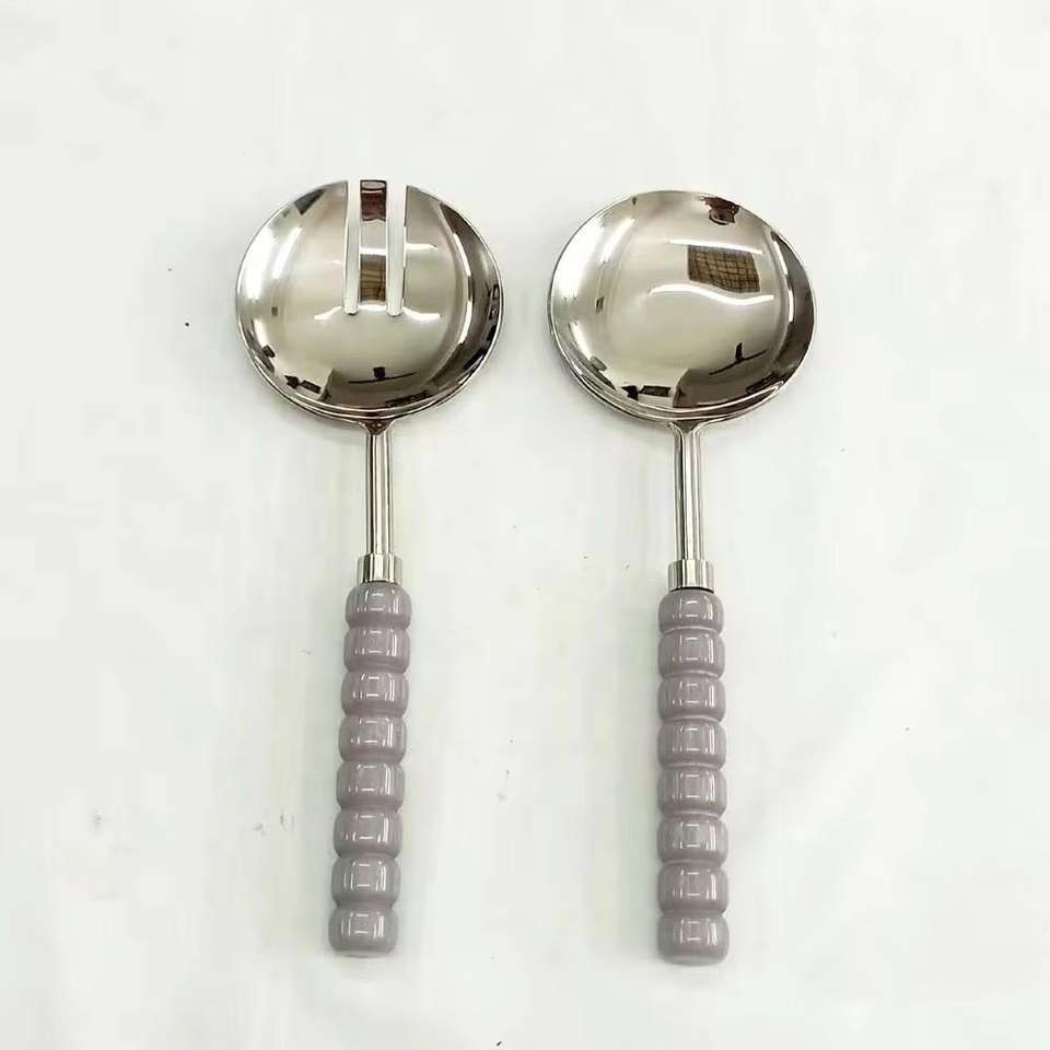 Cuillère et fourchette coréennes personnalisées en acier inoxydable Design en bambou Poignée en céramique grise Couverts à salade décoratifs en métal