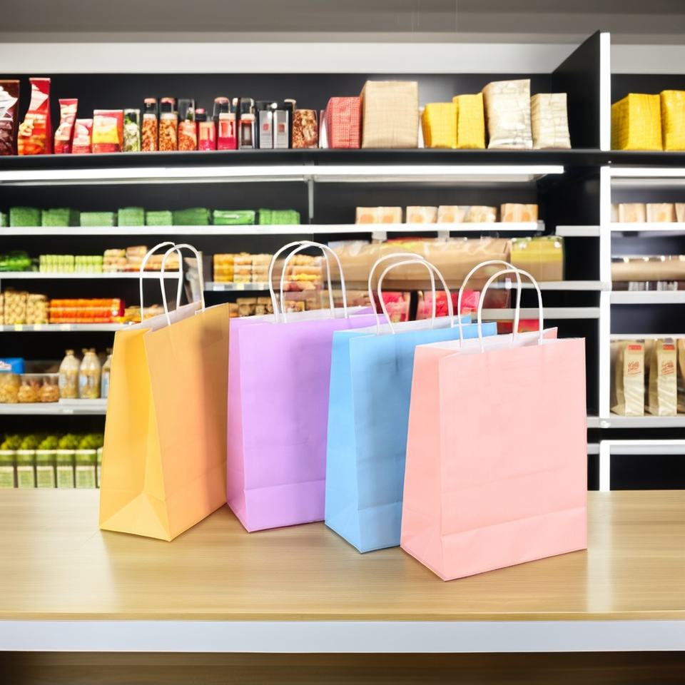 Sacs en papier kraft personnalisés avec votre logo – Emballage à emporter pour la restauration rapide – Impression numérique en usine – Sacs à poignée pour cadeaux, vêtements et chaussures