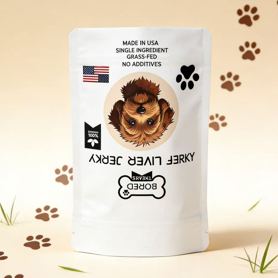 Pochette en papier kraft personnalisée, sac à fond plat blanc, sac en aluminium pour aliments pour animaux, emballage pour friandises pour chiens