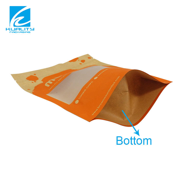 Sacs en papier kraft personnalisés avec fermeture éclair et fenêtre pour brownies et friandises, emballage alimentaire, transparent