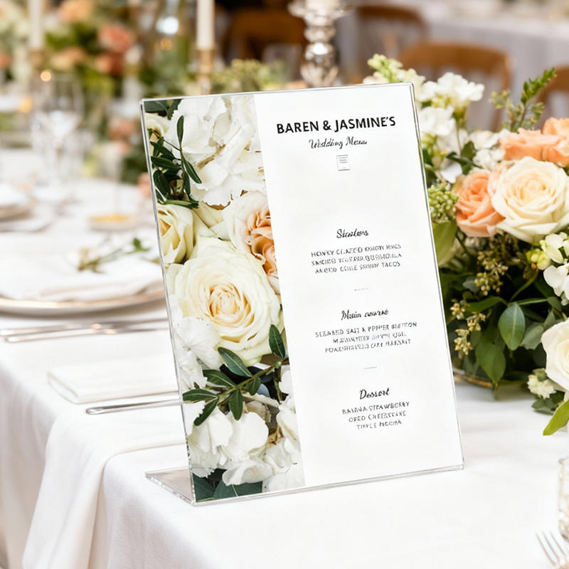 Support de table double face en acrylique en forme de L pour photos et panneaux A4/A5/A6 – Étanche, écologique et durable