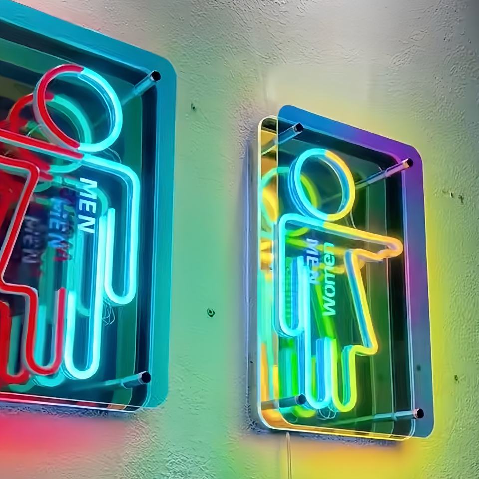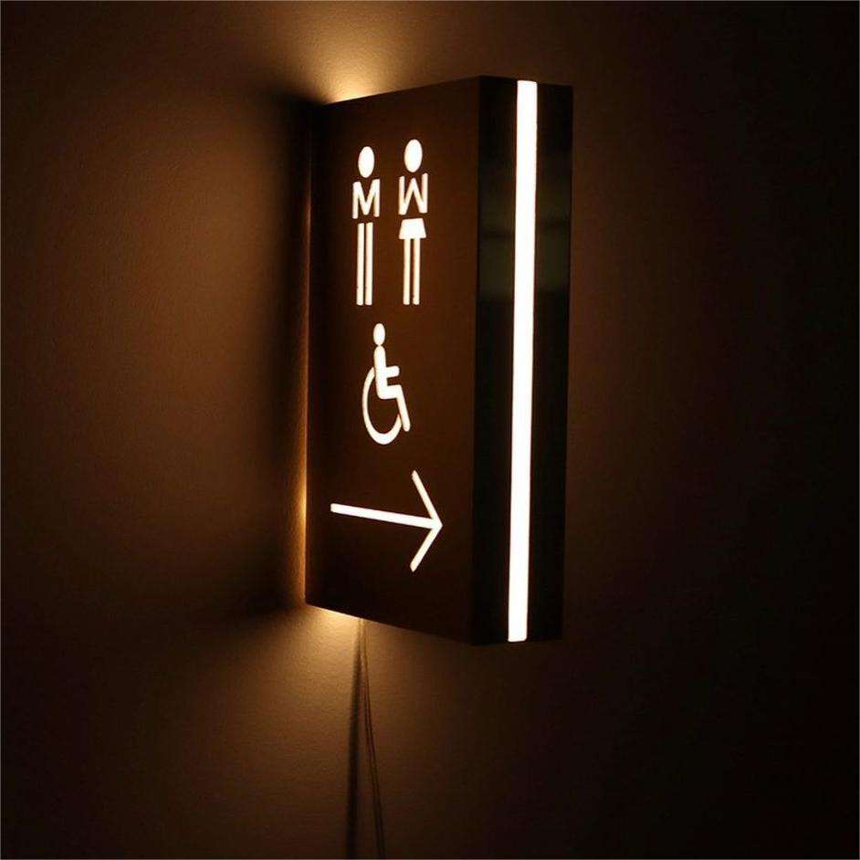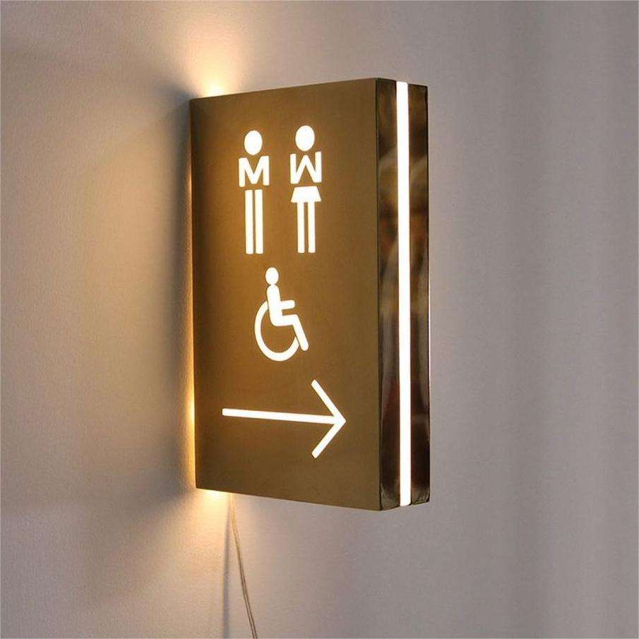 Panneau métallique personnalisé rétroéclairé à LED pour toilettes Panneau suspendu en acier inoxydable pour toilettes avec lumière pour entreprises et hôpitaux