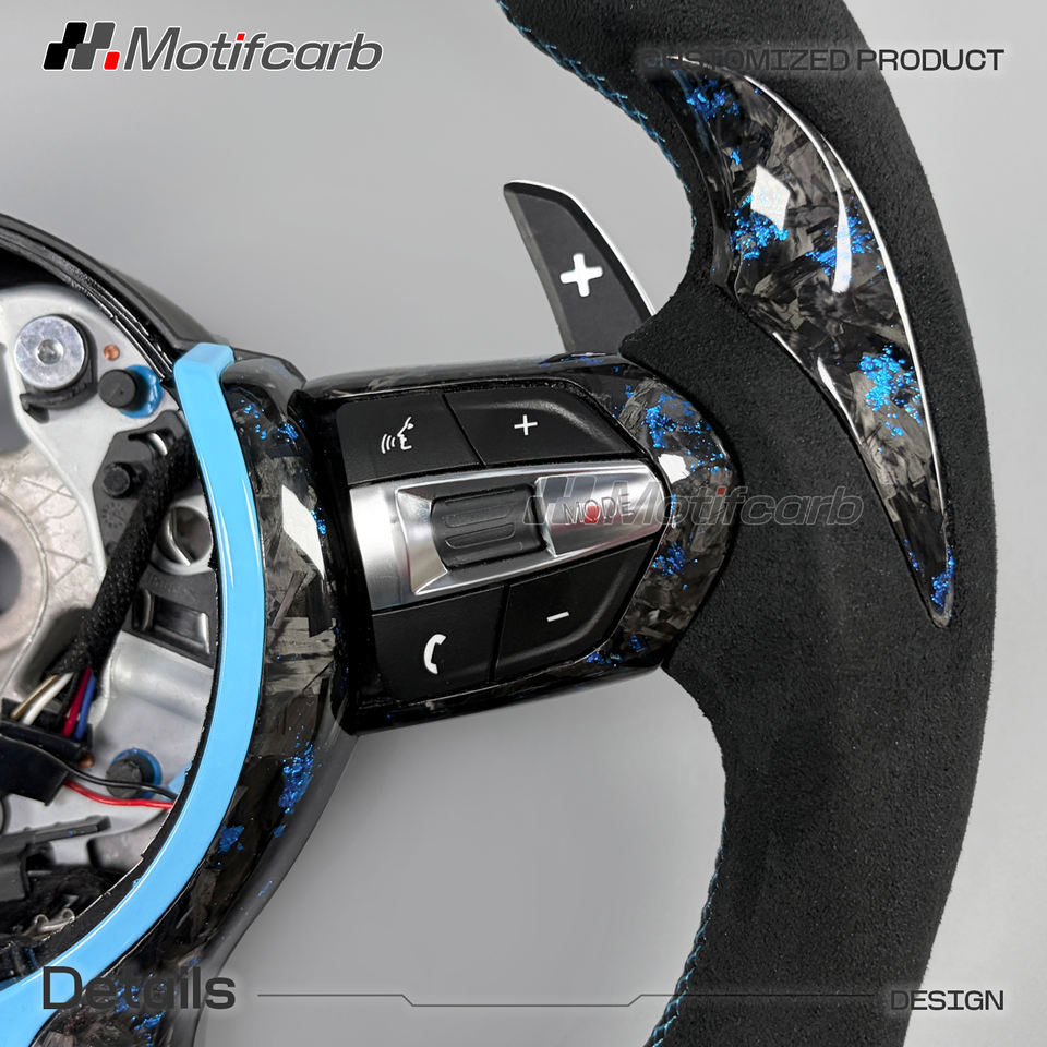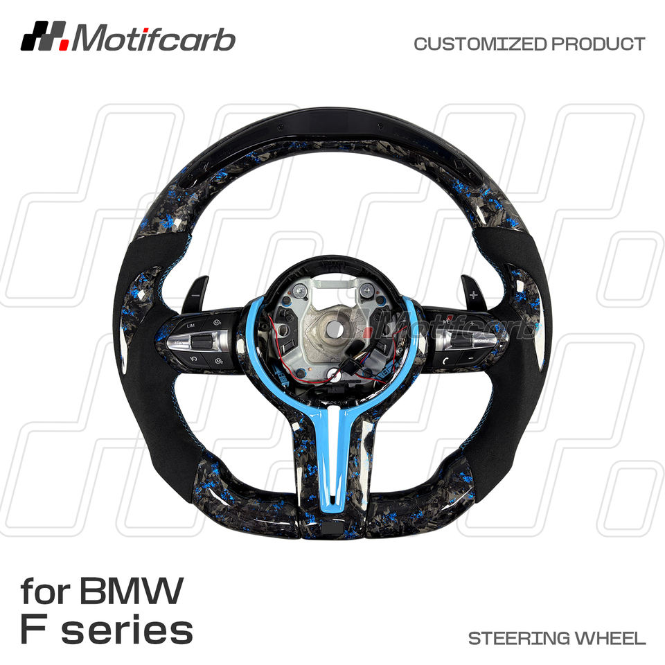 Volant personnalisé en fibre de carbone forgée bleue avec LED pour BMW X3 X5 X6 F30 F10 F87 F82 F80 F11 F15 M2 M3 M4 M5 M6 240i 440i 540i