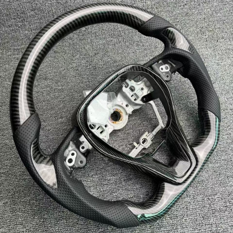 Volant personnalisé chauffant en cuir et Alcantara avec fibre de carbone pour Toyota Corolla SE / Camry 8ème génération / Venza 2021 2024 2016