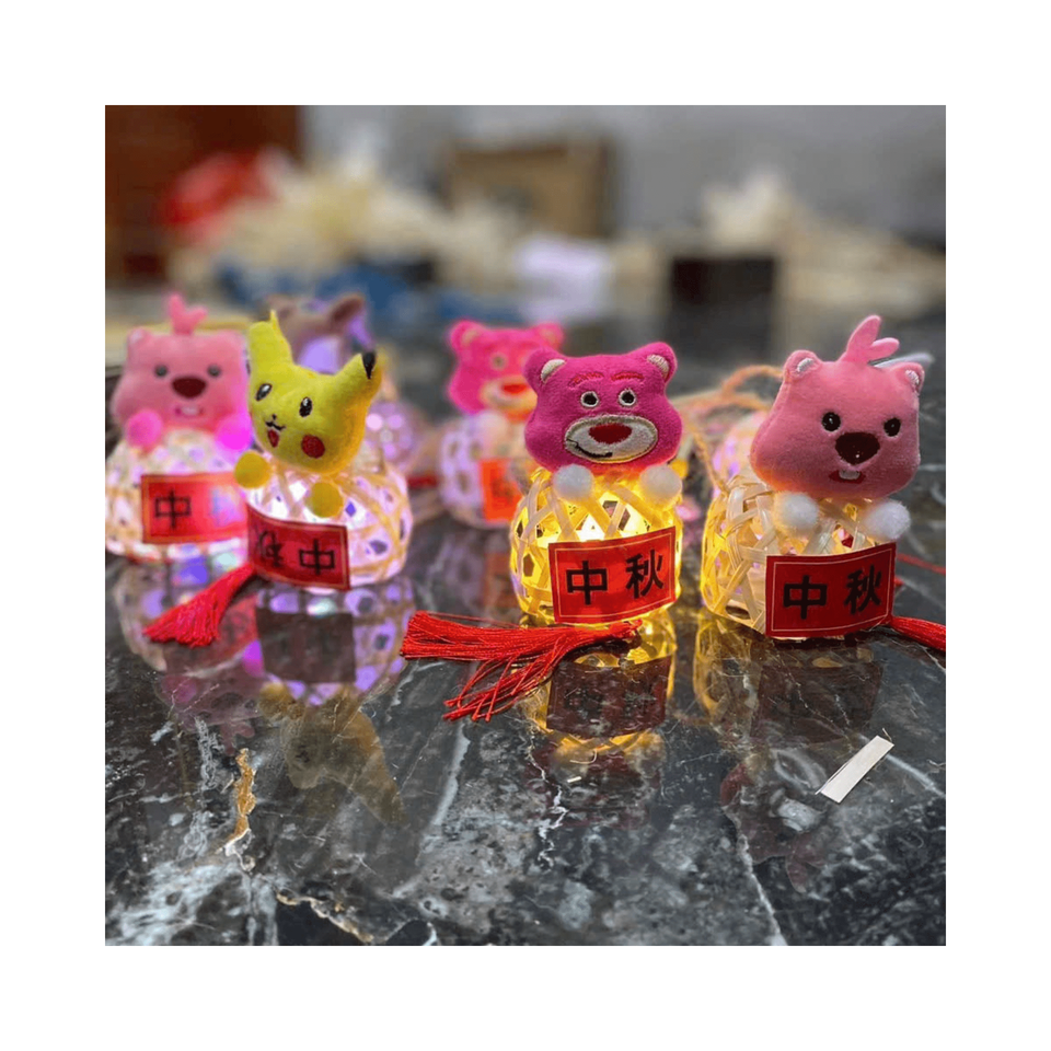 Lanterne de mi-automne en bambou à lumière LED personnalisée Lanterne de festival de tissage faite à la main Lanterne portable en bambou rougeoyant Teddy