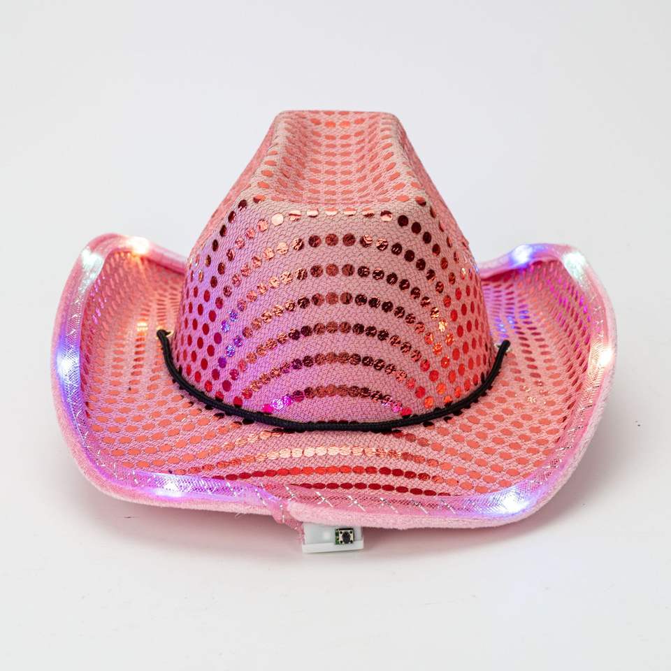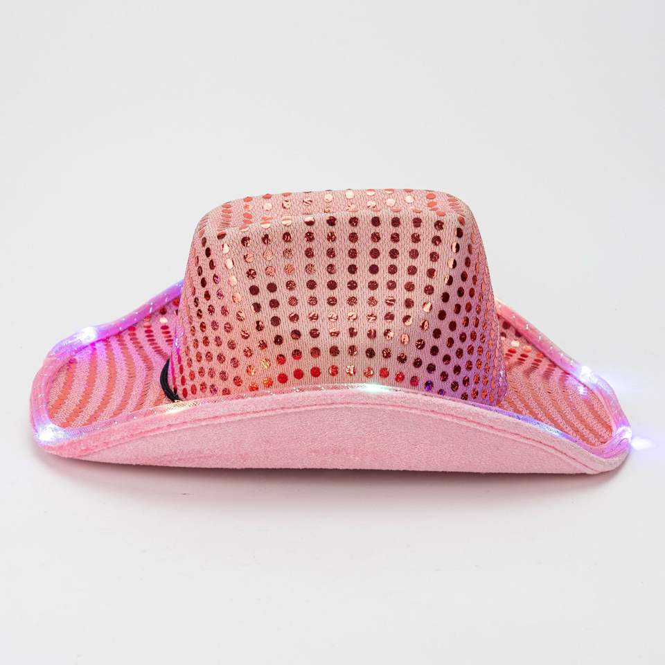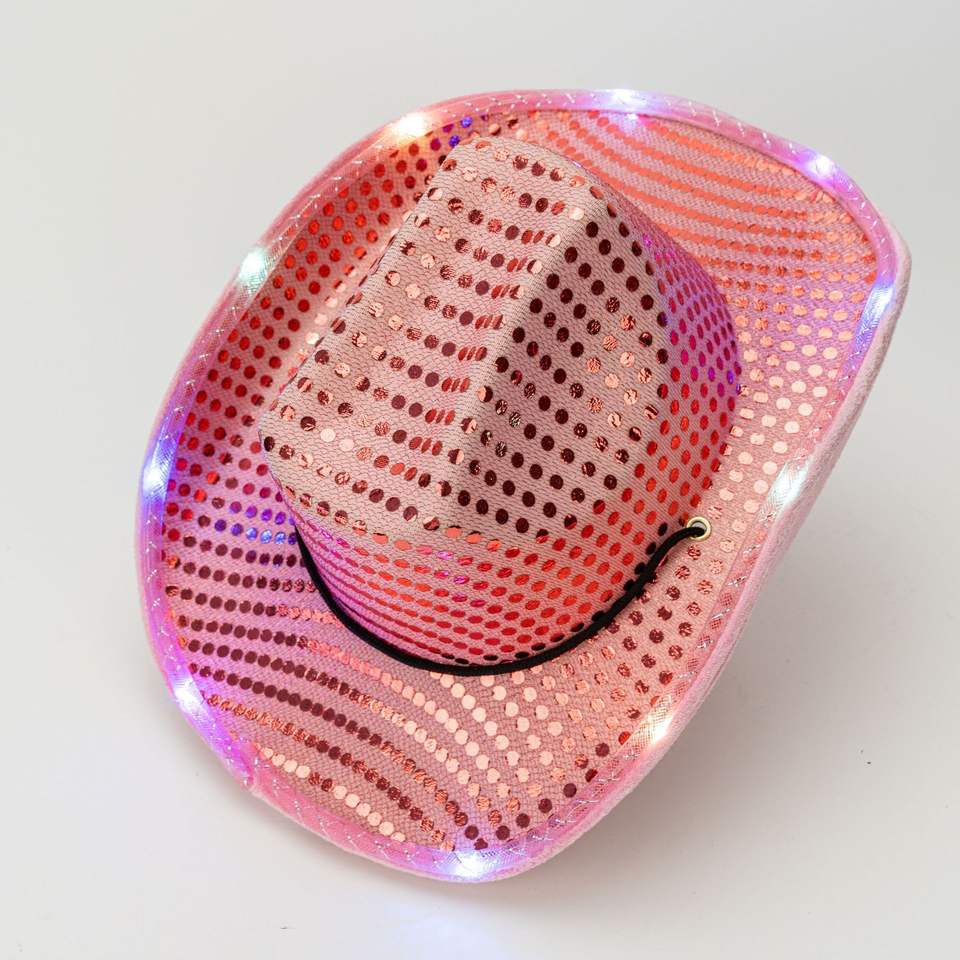 Chapeau de cowboy occidental lumineux à LED personnalisé, performance scénique colorée, festival de Noël, fête, rose scintillant, EVA, voyage, pêche