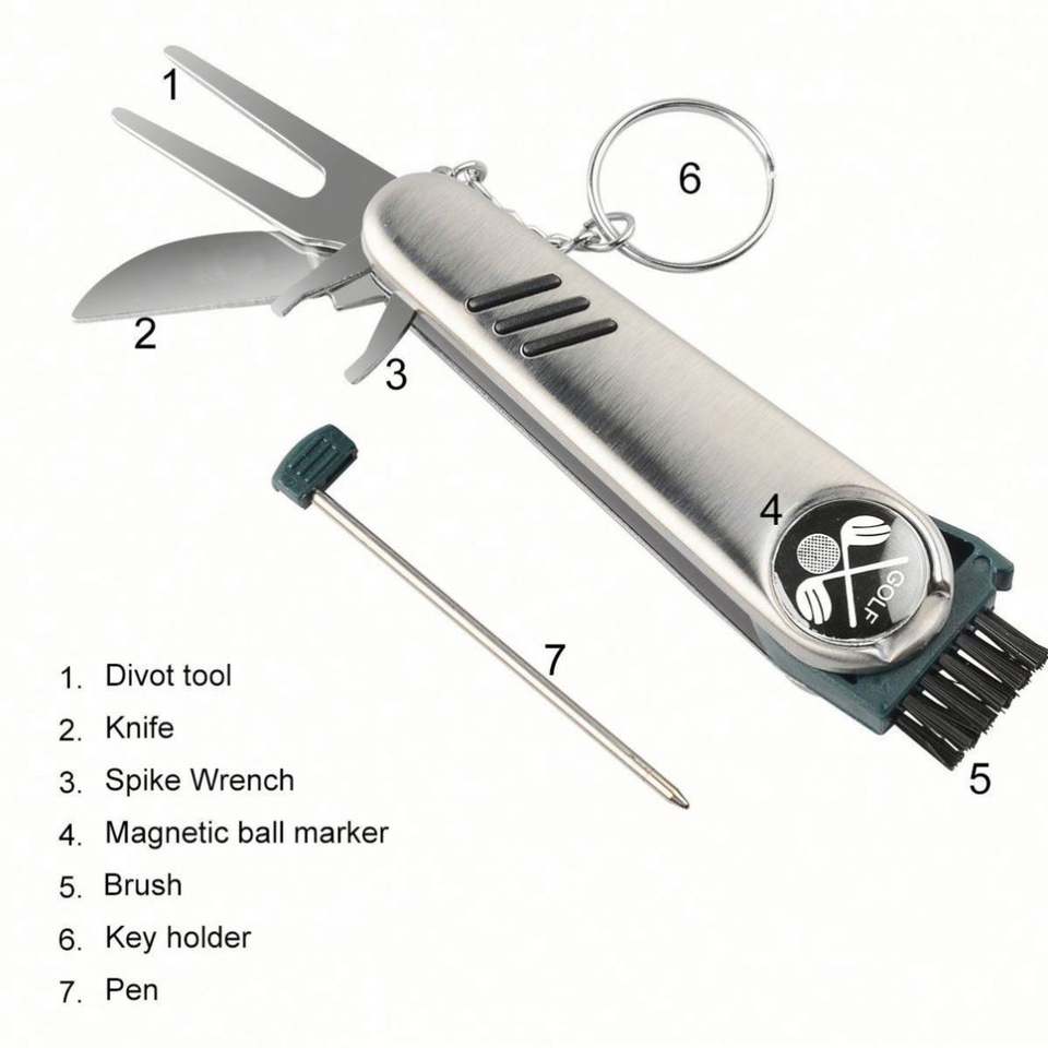 Nom de l'article:Outil de golf 7 en 1 avec porte-clés