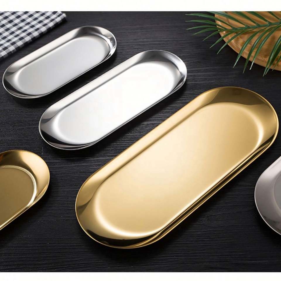 Custom LOGO Bathroom Storage Small Oval Vanity Serving Platter Stainless Steel Decorative Tray Dishwasher Safe