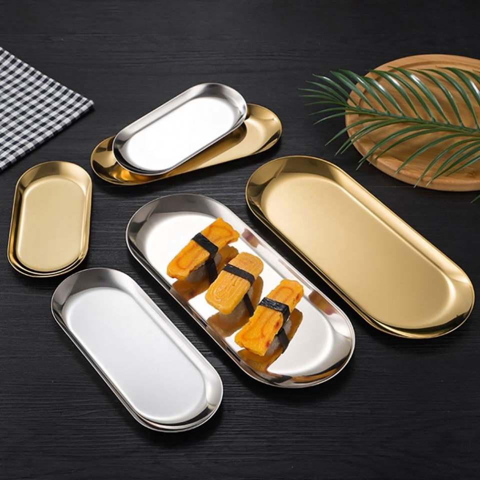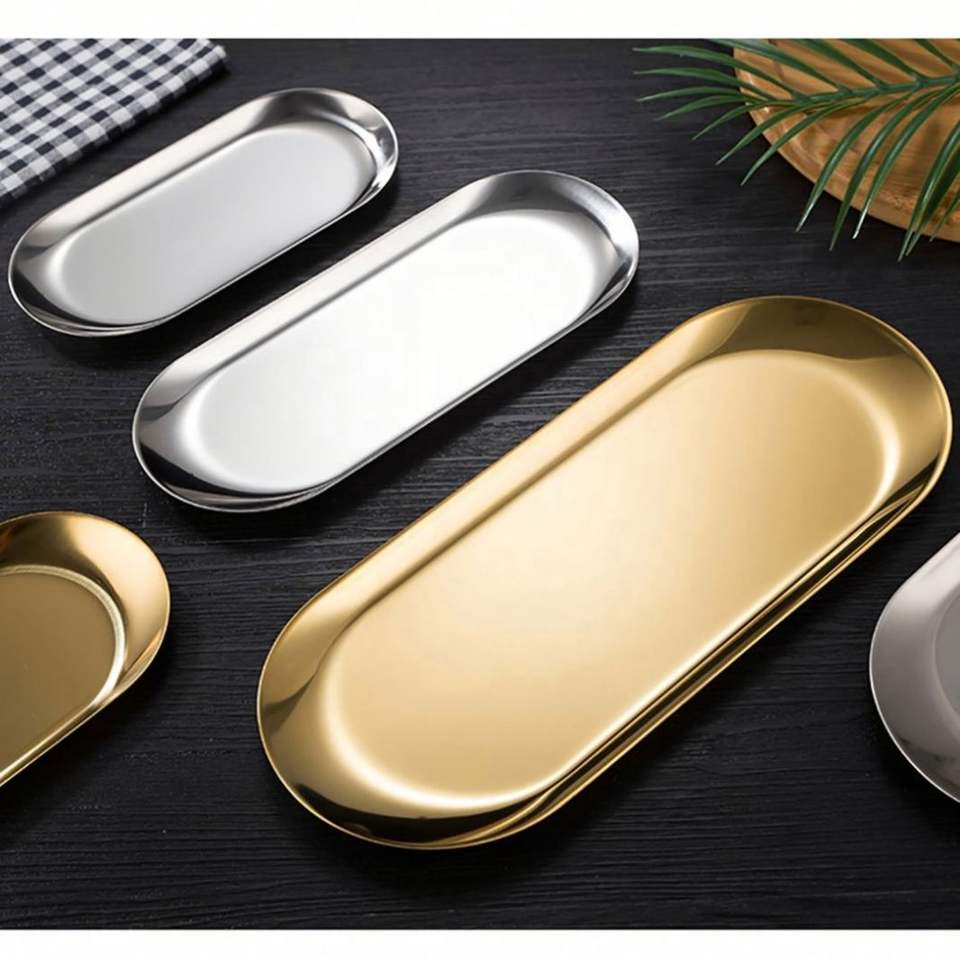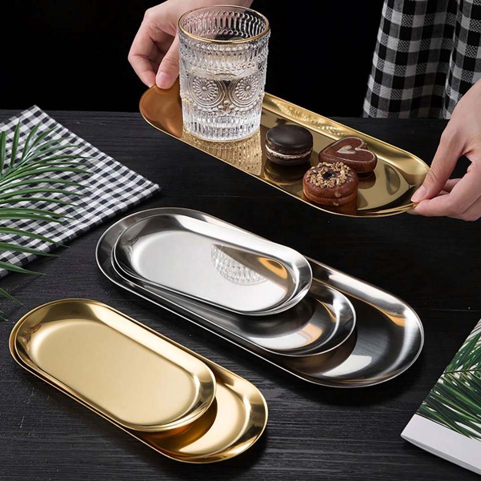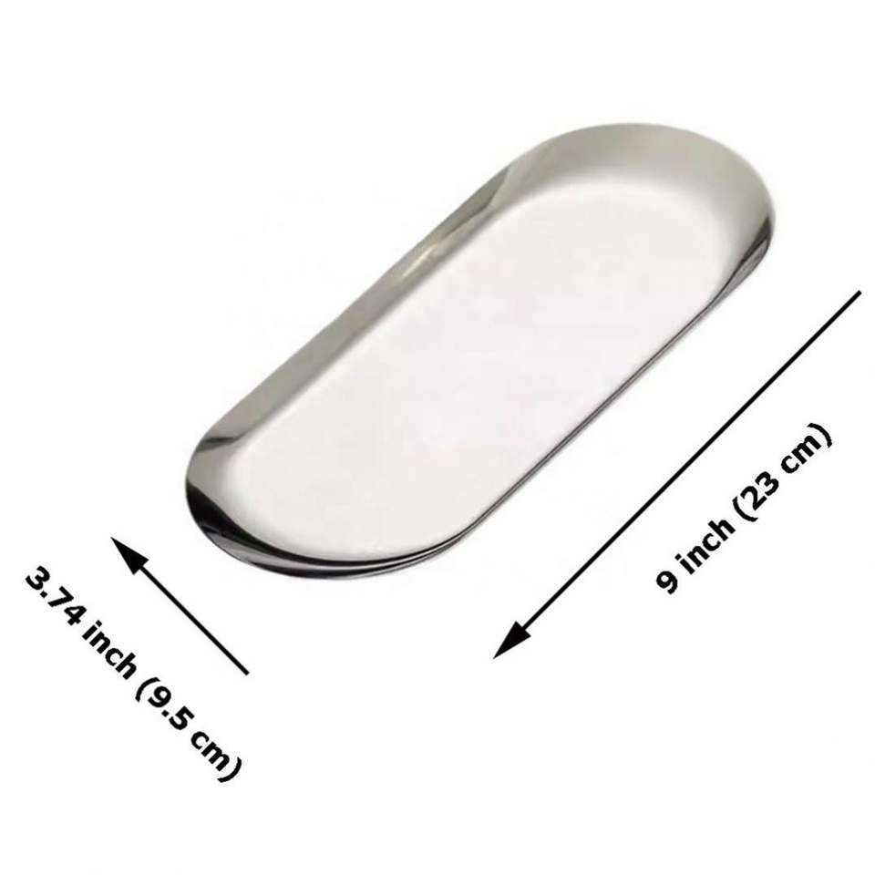 Plateau de service ovale personnalisé avec logo pour salle de bain, en acier inoxydable, décoratif, compatible lave-vaisselle
