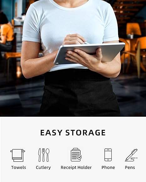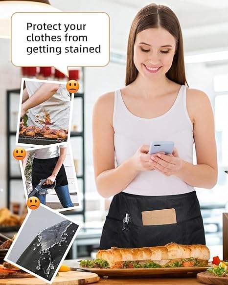 Tablier de serveur demi-serveur court en polyester noir avec LOGO personnalisé Tablier de taille pour cuisine Café Bar Tabliers de chef