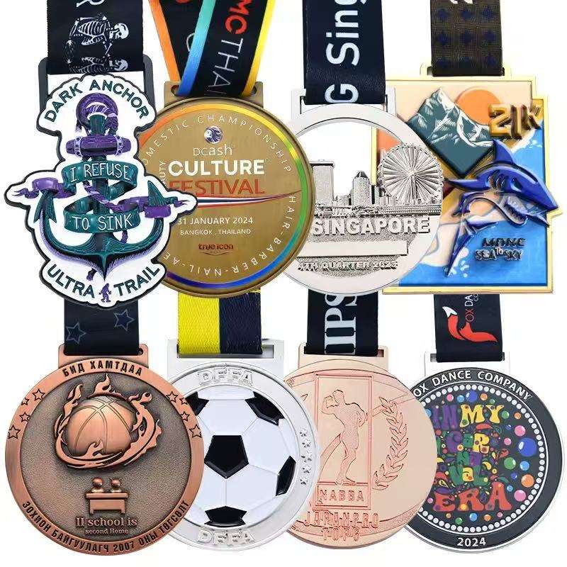 Médailles et trophées sportifs en alliage de zinc 3D émaillés à chaud, plaqués or, avec logo personnalisé, pour la promotion publicitaire et les cadeaux.