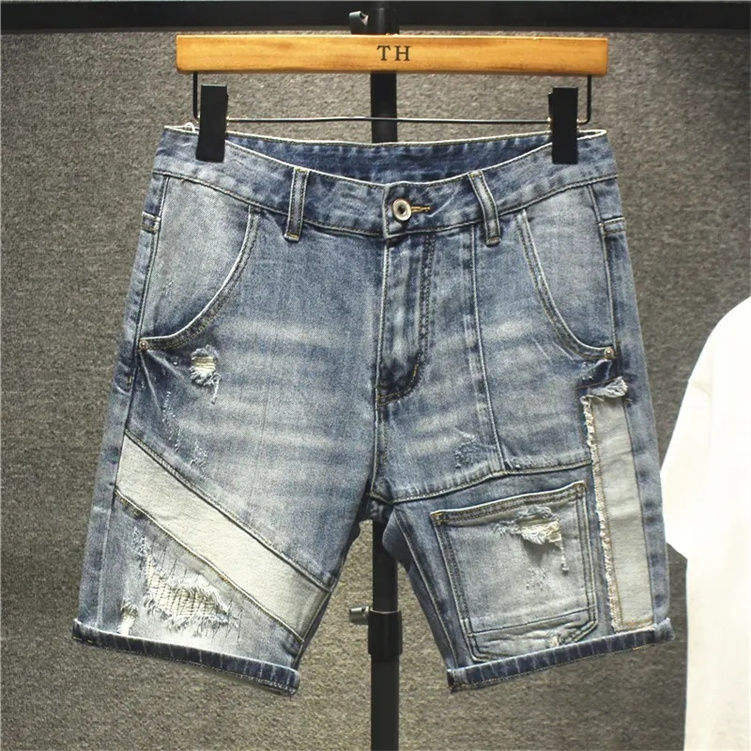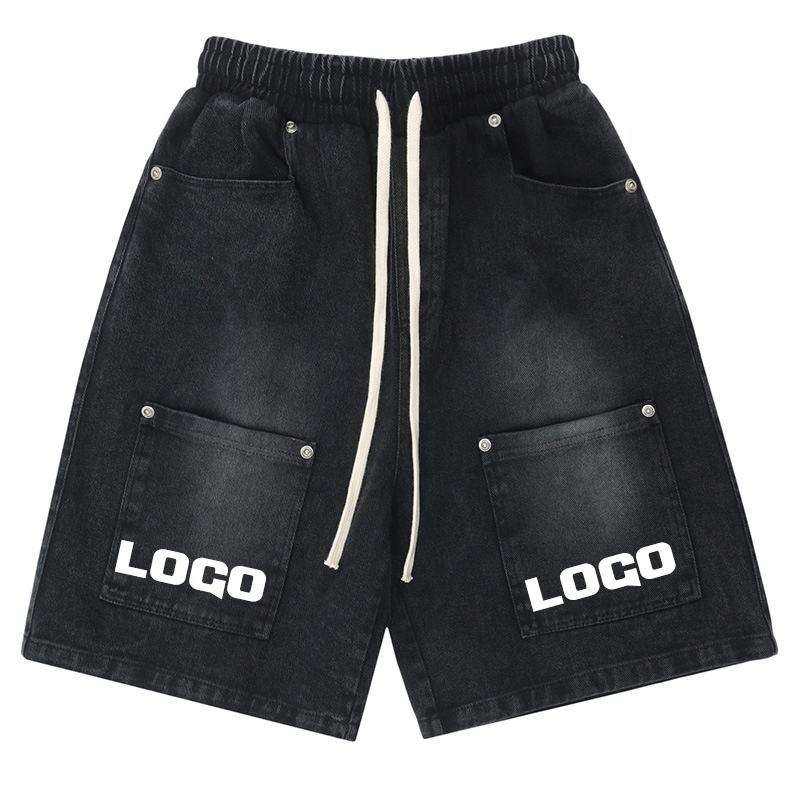 Shorts Cargo en Jean Vintage Grande Taille pour Hommes avec LOGO Personnalisé, Qualité Supérieure, OEM, Été, Légers, Respirants, Broderie Cristal, 100% Coton