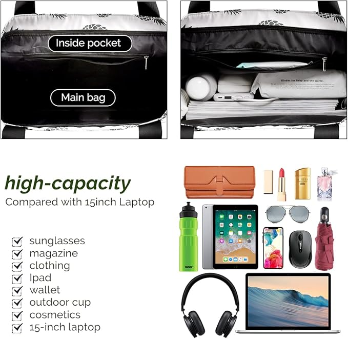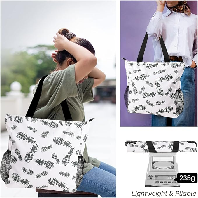 Sac fourre-tout en nylon pliable grande capacité avec logo personnalisé, imperméable, pour la plage, avec fermeture éclair et poches pour femmes
