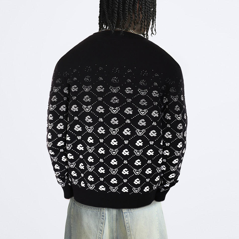 Pull-over d'hiver pour homme en jacquard avec logo personnalisé, col rond, manches longues, tricoté avec motif, couleur et taille personnalisées