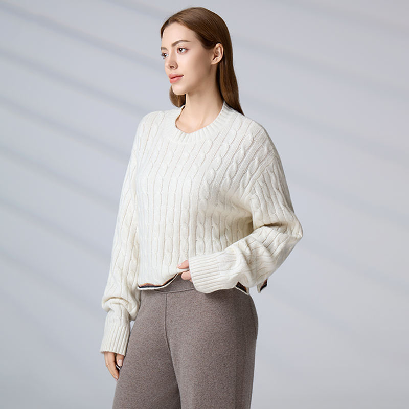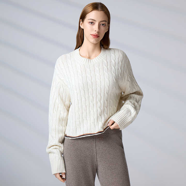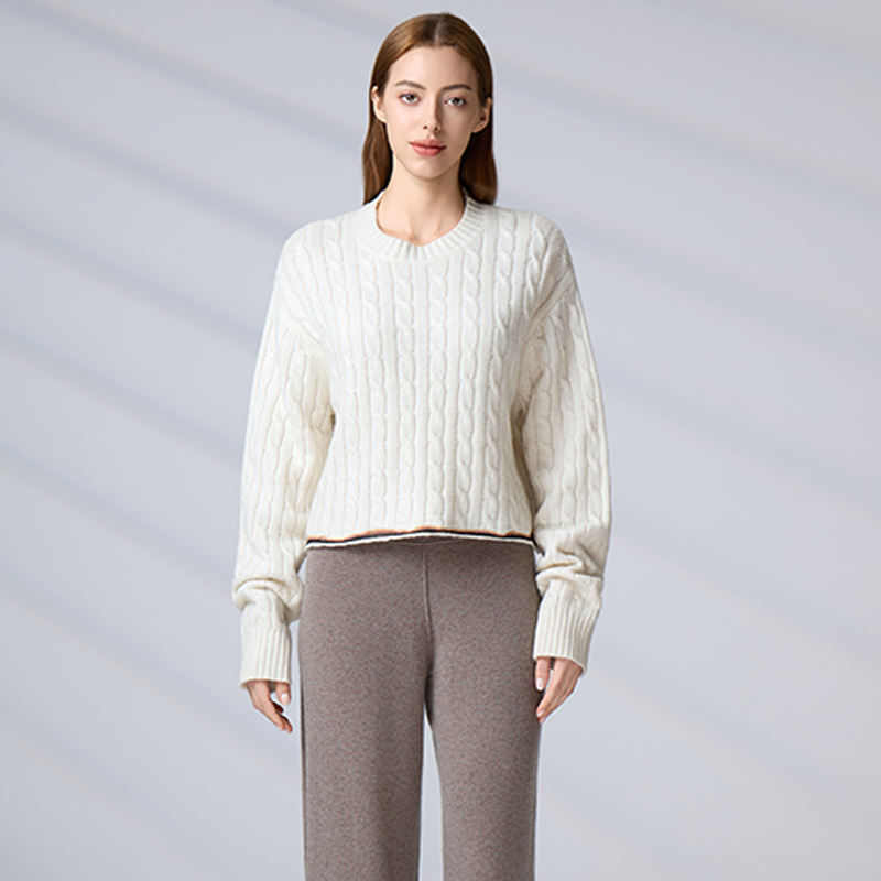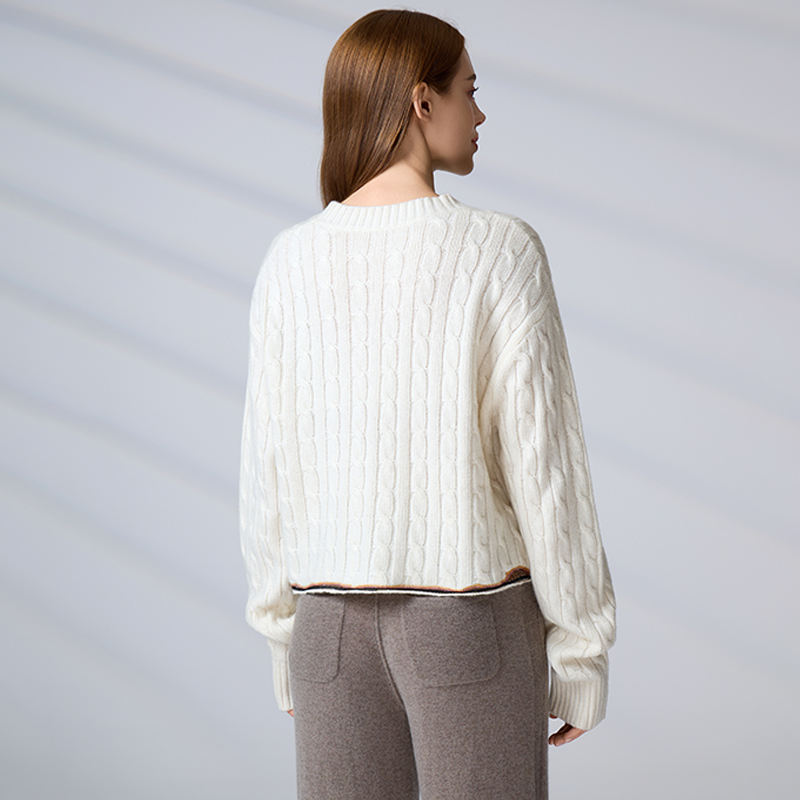 Pull en tricot à manches longues avec logo personnalisé, pull oversize pour femmes, pull en tricot d'hiver, pull en tricot torsadé pour femmes