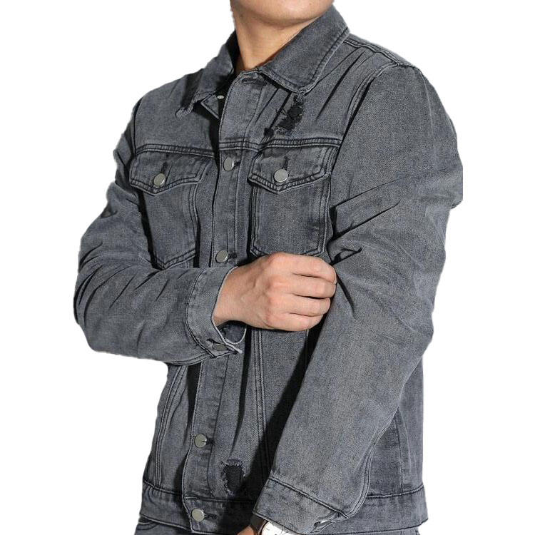 Veste en jean unie pour homme avec logo personnalisé, poche à rabat déchirée, veste en jean noire pour homme, livraison DDP