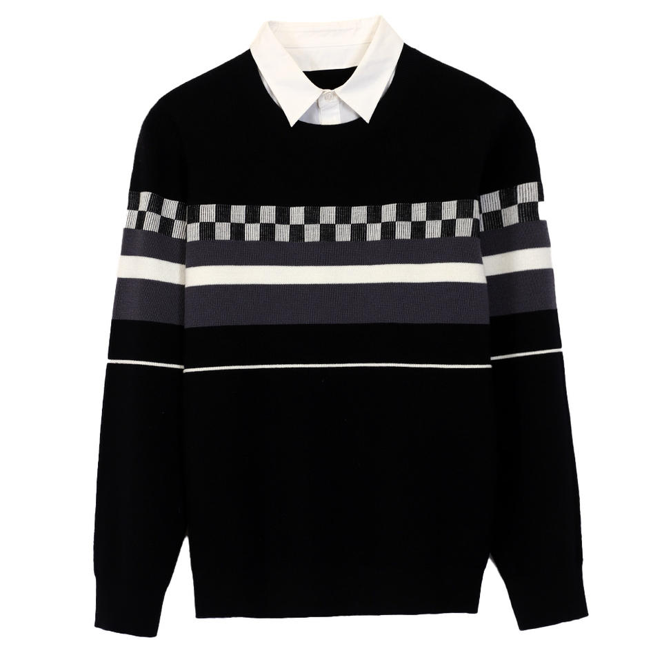 Pull en coton à manches longues pour homme, col rabattu, jacquard à carreaux, logo personnalisé, anti-plis, anti-boulochage, couleur personnalisable