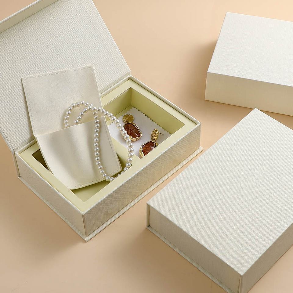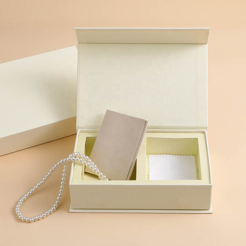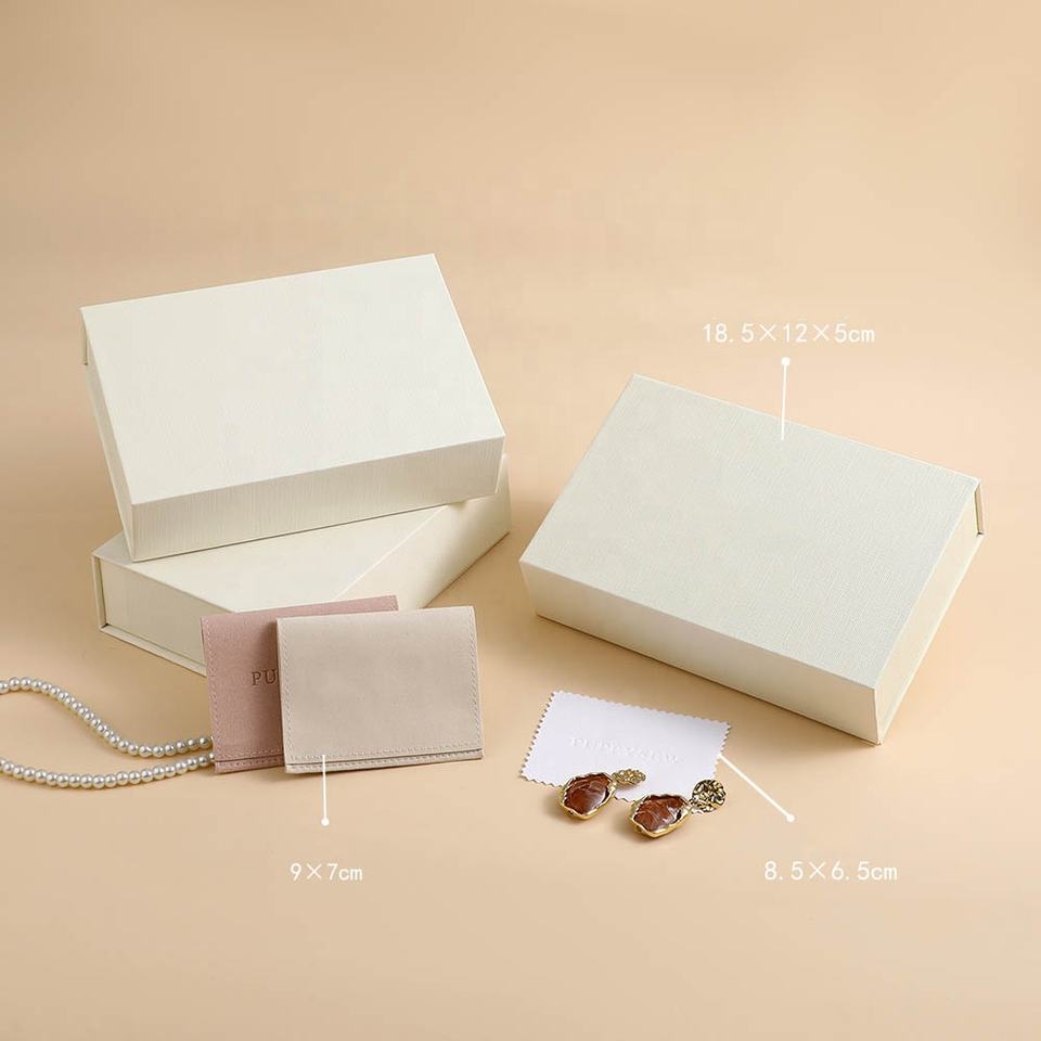Boîte d'emballage pour bijoux en microfibre avec logo personnalisé, sac en papier, boîte à bijoux magnétique pour collier, bague, coffret cadeau, boîte d'expédition pour bijoux