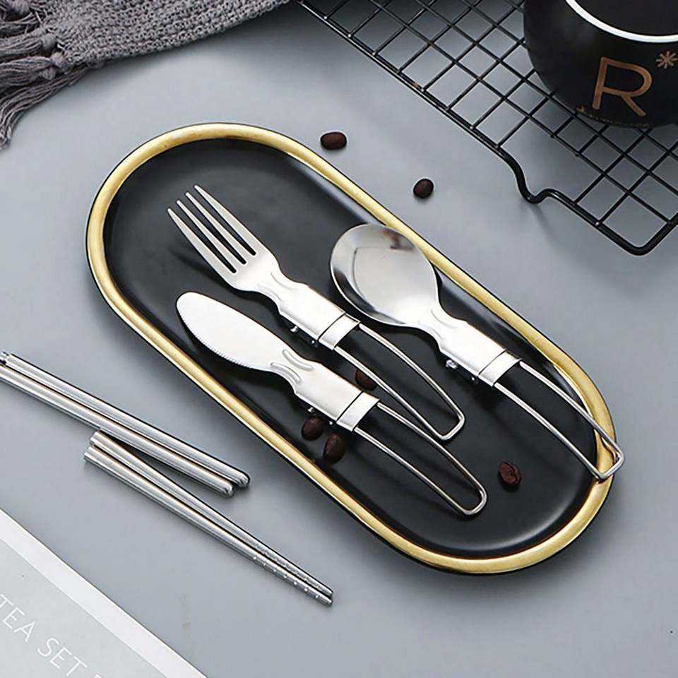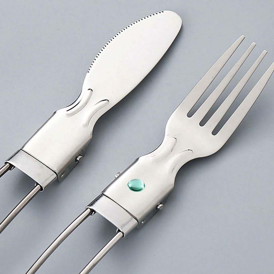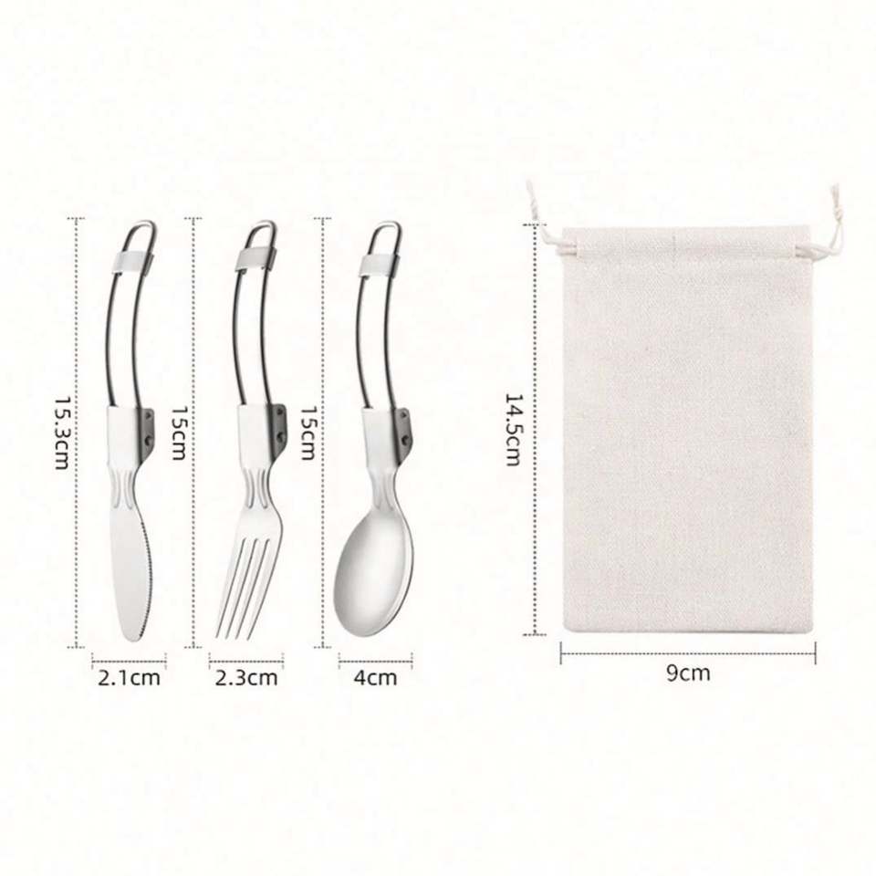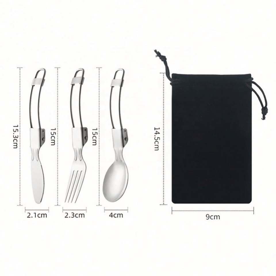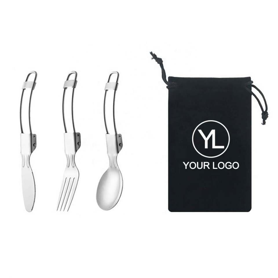 Ensemble de couverts de voyage pliables en acier inoxydable 304 avec logo personnalisé, finition miroir, cuillère, fourchette, couteau, avec pochette de rangement