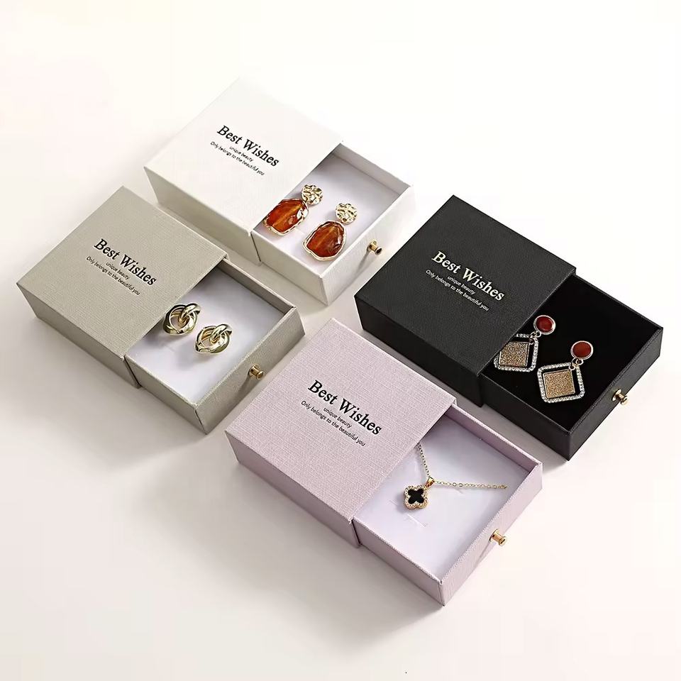 Boîte à bijoux en papier LOGO personnalisé Bague pendentif Collier Bracelet Boucle d'oreille Cadeau d'impression de bijoux Boîte en papier Bijoux Ecrin Bague