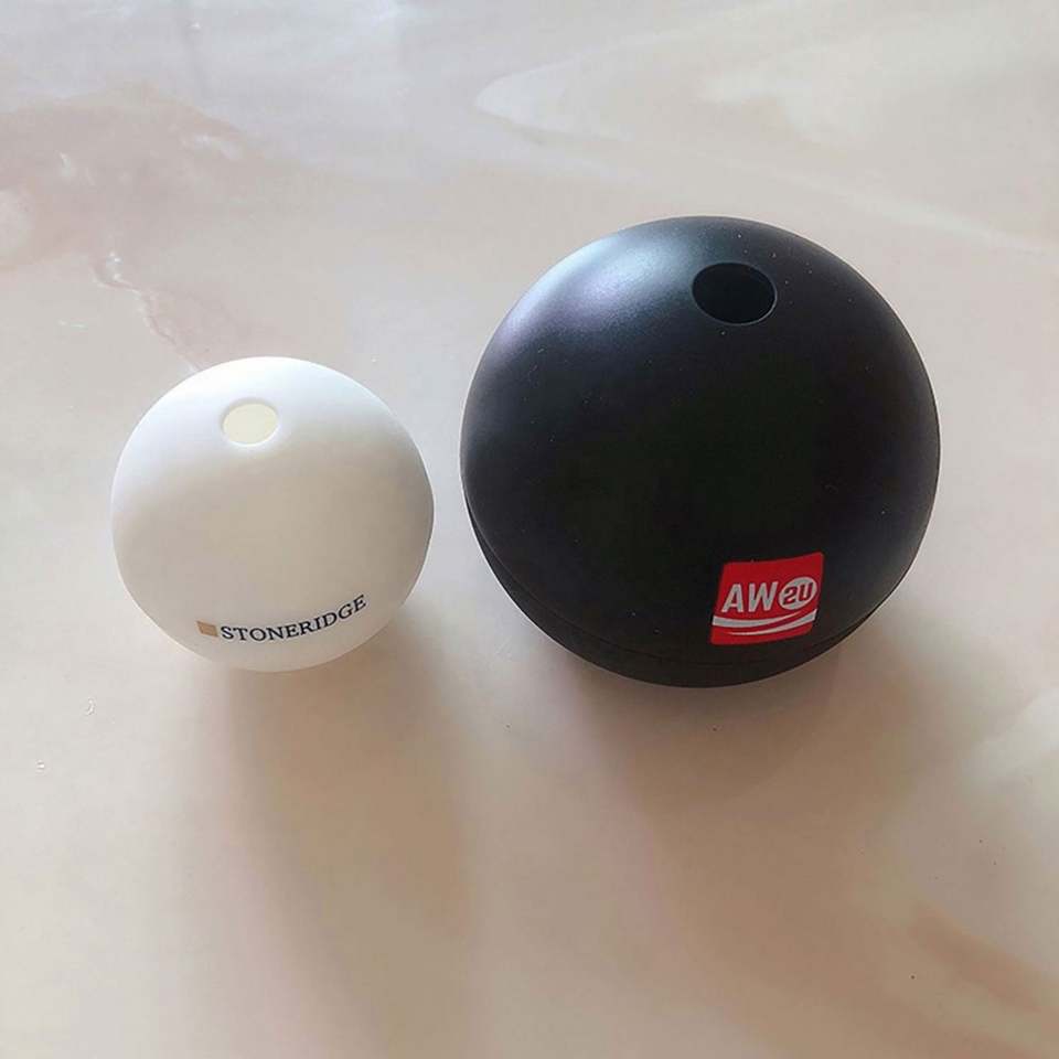 Moules à glaçons sphériques en silicone écologiques réutilisables de 2,5 pouces avec logo personnalisé pour whisky et cocktails