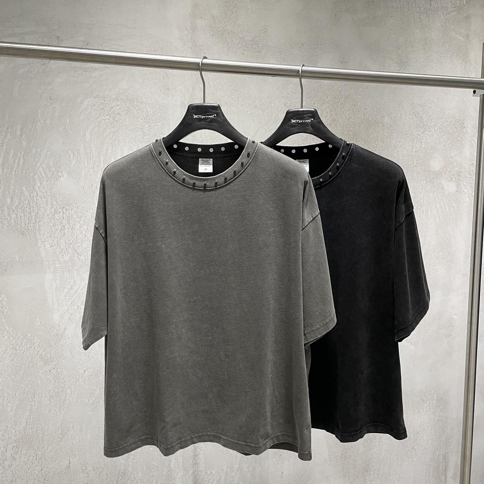 T-shirt en tricot à manches courtes de couleur unie avec logo personnalisé, style hip-hop, pour homme, 100% coton, décontracté, respirant, léger, pour l'été, à porter tous les jours