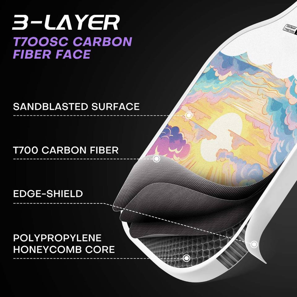 Raquette de pickleball portable en fibre de carbone sans bordure, approuvée USAPA, de haute qualité, avec noyau en nid d'abeille, texture texturée, 16 mm, avec logo personnalisé