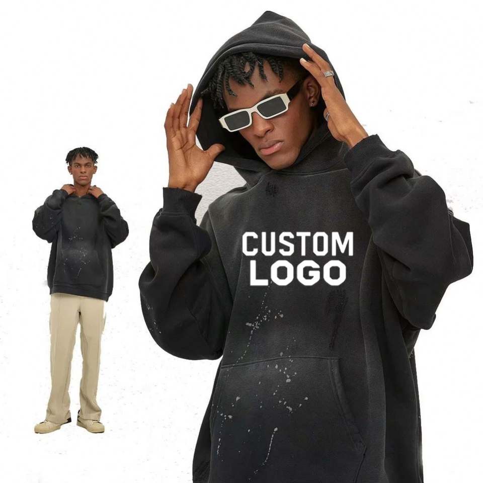 Sweat à capuche homme personnalisé avec logo, coupe ample vintage vieillie, 500 g/m², en molleton bouclette vierge, surdimensionné, lourd, sans cordon, délavé à l'acide